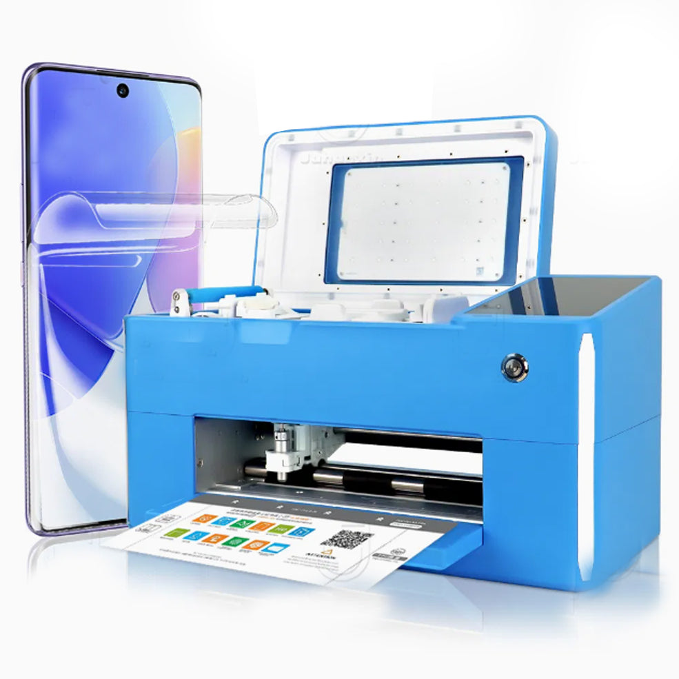 Este equipo puede satisfacer todas las demandas de aplicación de protectores de pantalla. La máquina corta todos los modelos de películas frontales y películas traseras de cobertura total de teléfonos móviles.